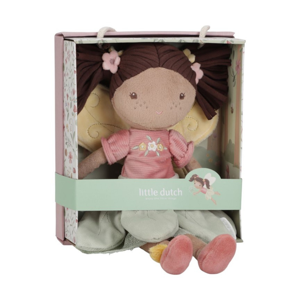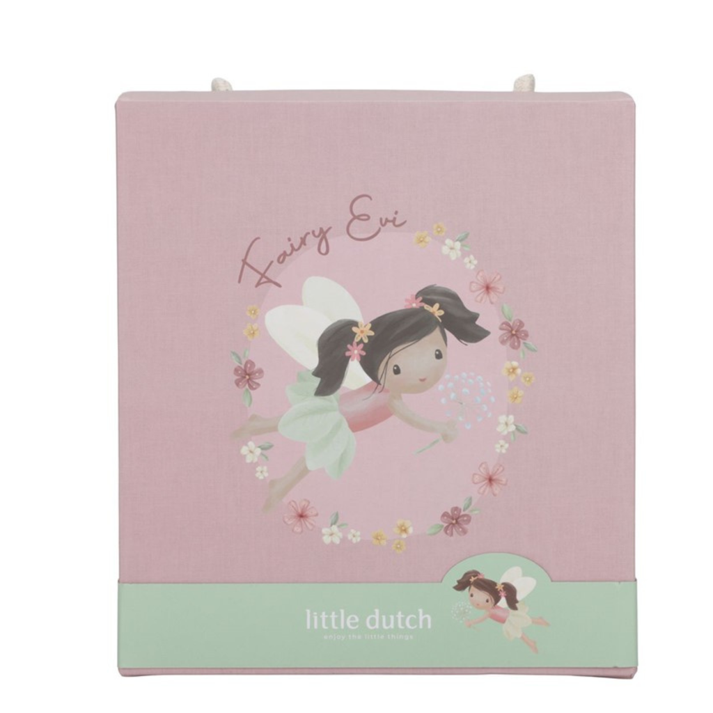 Conoce a Evi, la hada suave de peluche de la colección Fairy Garden. Con sus alas delicadas y detalles cuidadosamente elaborados, Evi invita a los más pequeños a explorar un mundo mágico entre flores y abejas. Su tamaño y textura están diseñados para manos infantiles, fomentando tanto el juego seguro como la estimulación sensorial. Además de ser una compañera entrañable, Evi añade un toque encantador y acogedor al ambiente de la habitación del bebé. Ideal para acompañar momentos de diversión y fantasía.