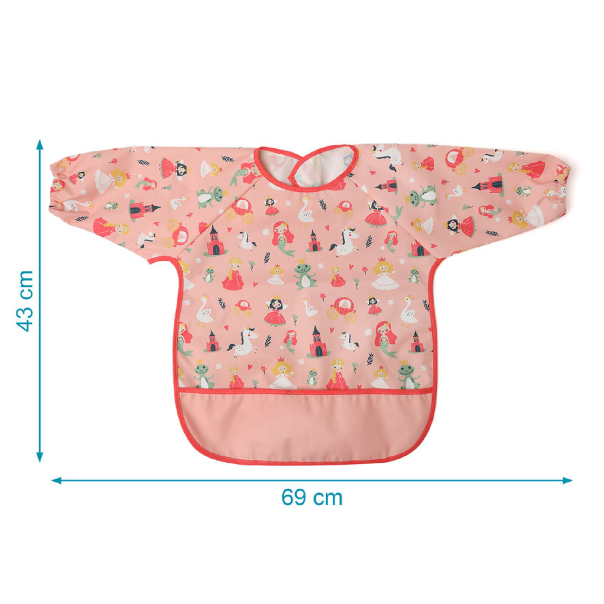 Bavoir imperméable à manches, idéal pour les premiers repas, la crèche et les activités créatives. Fabriqué en 100 % polyester avec un revêtement TPU doux et imperméable, il protège les vêtements des taches et des éclaboussures tout en préservant le confort de bébé. Il est doté d'une poche pratique pour récupérer les miettes et faciliter le nettoyage. Recommandé à partir de 4 mois. Lavable en machine à 30 °C maximum. Ne pas utiliser d'eau de Javel, ne pas repasser et ne pas sécher en machine.