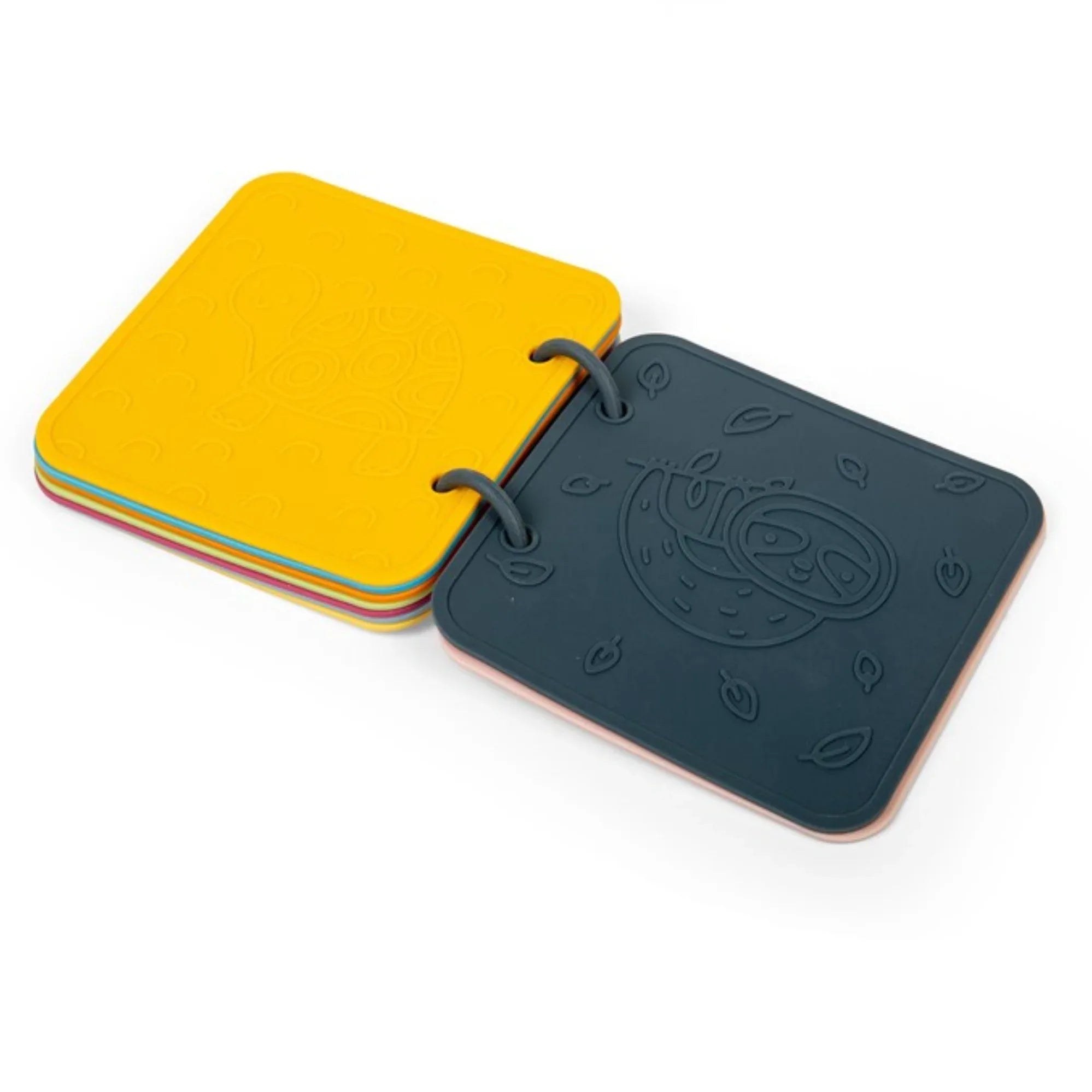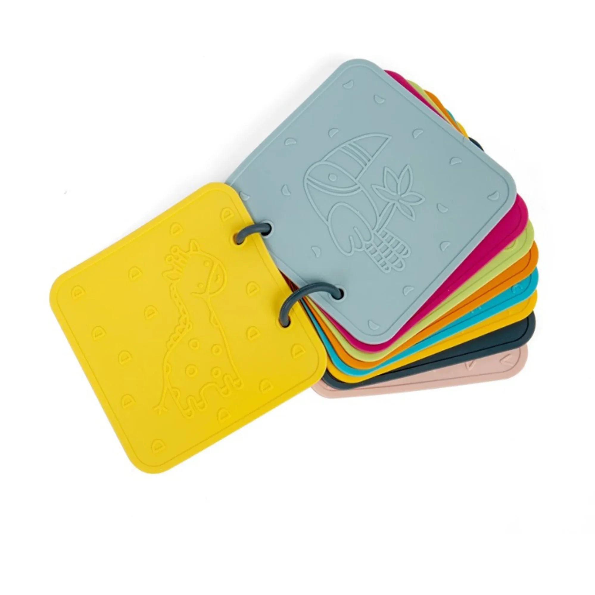 Flessibile, resistente e maneggevole, include anelli per girare le pagine con facilità. Ideale per i bambini durante la dentizione e l'esplorazione, promuovendo la coordinazione e la stimolazione tattile.