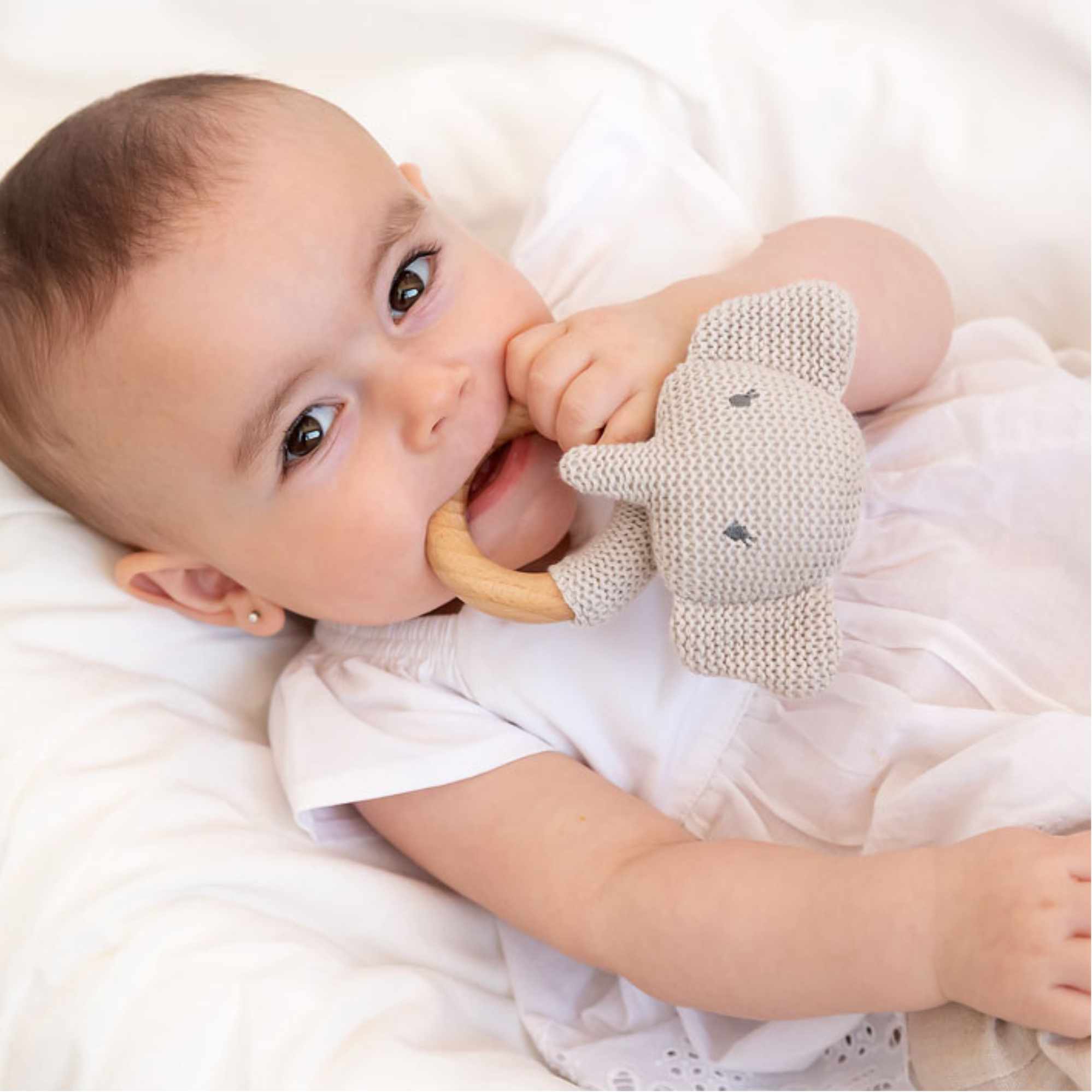 ¿Has visto los demás mordedores de animalitos? ¡Son todos irresistibles!Materiales: exterior 100% algodón, relleno de poliéster y aro de madera.