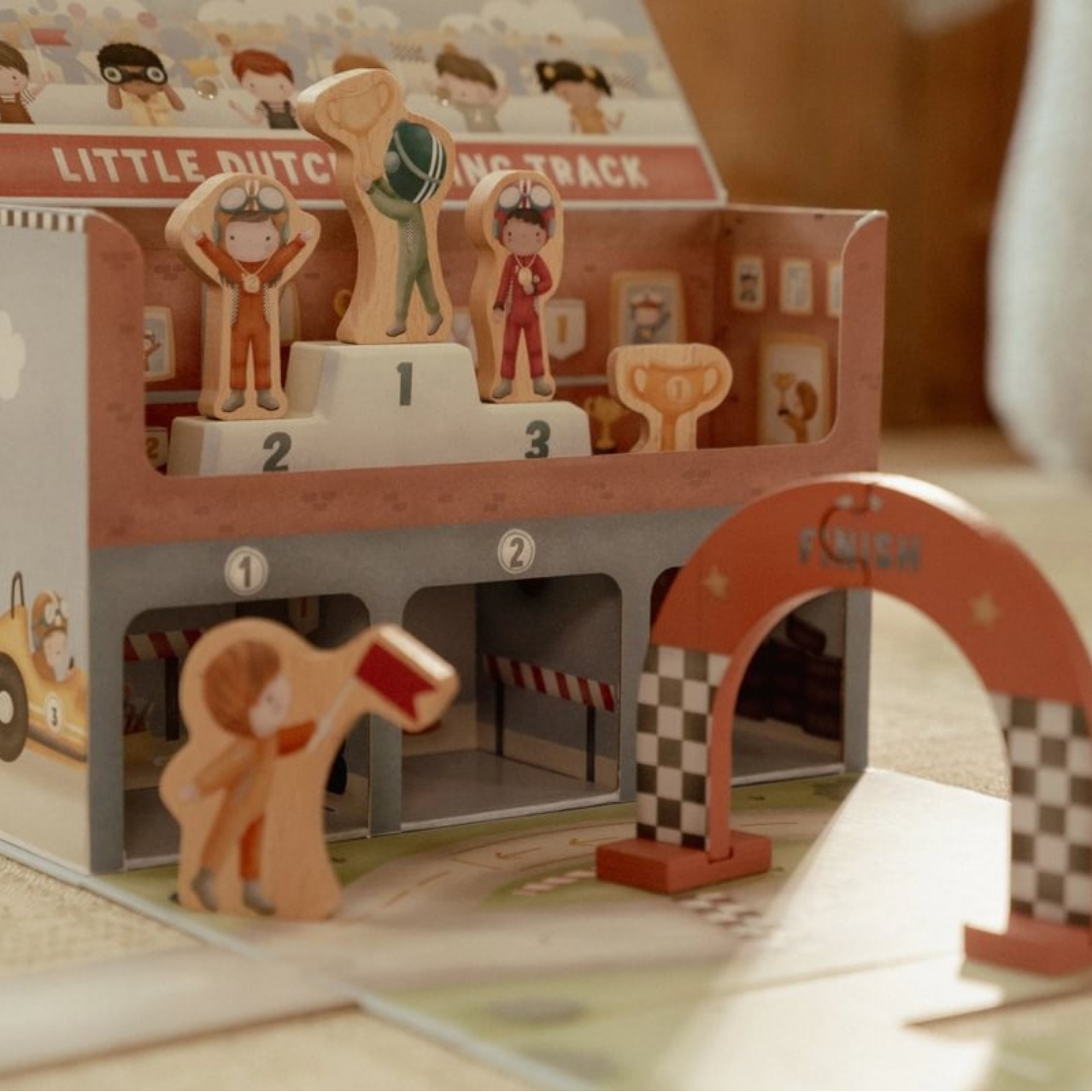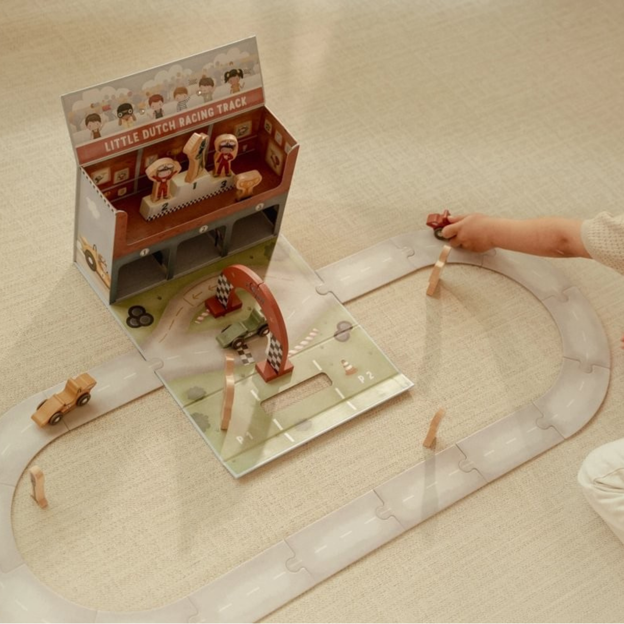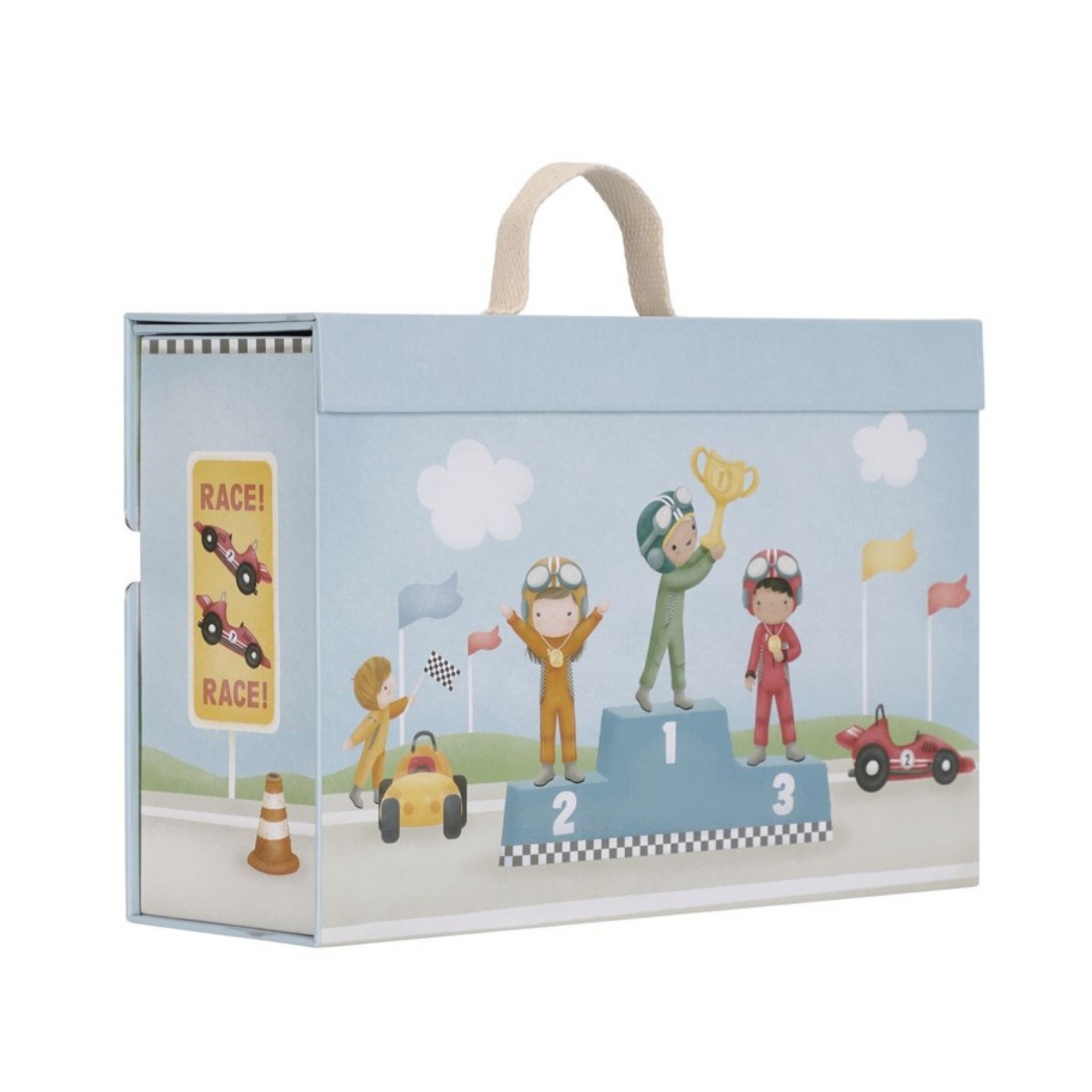 Transforma tu espacio de juego en un circuito de carreras profesional con este estuche de cartón innovador. Incluye todo lo esencial: vehículos de competición, figuras de pilotos, línea de meta, señalización vial, trofeo y podio. Las piezas de la pista se ensamblan sin herramientas, permitiendo configuraciones personalizadas. Diseño inteligente que facilita el almacenamiento compacto tras cada sesión de juego. Ideal para desarrollar habilidades motoras, imaginación y comprensión de reglas de t